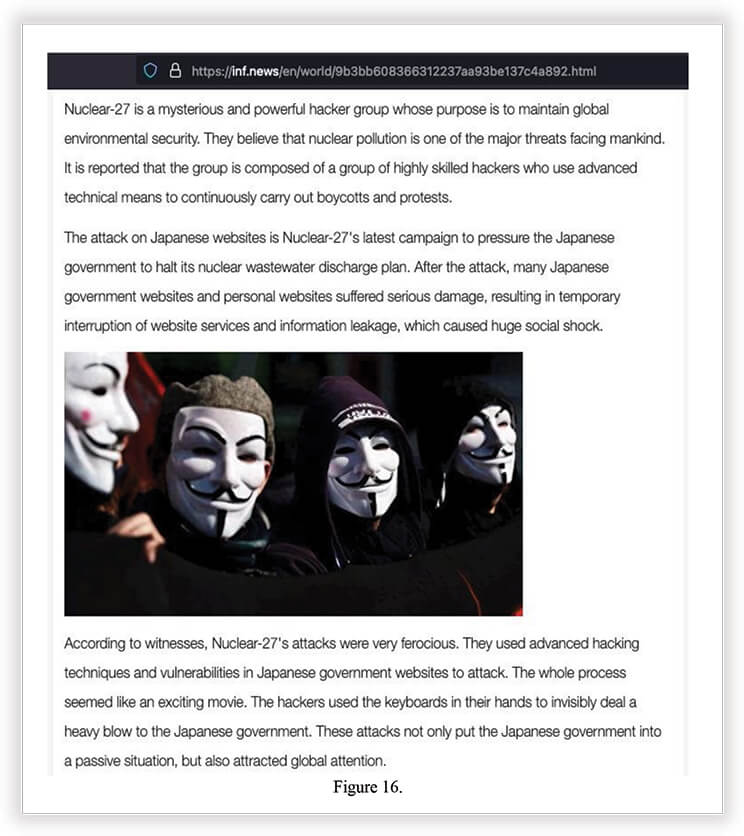 The article in question is written in a very sensational tone without any apparent understanding of cybersecurity, and the related context in which this activity of Nuclear 27 is being reported. A snippet of the article is shown below in Figure 16.