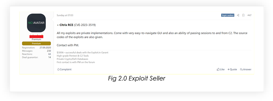 From underground forums, CYFIRMA Research team has observed that unknown hackers are selling CITRIX Exploits.